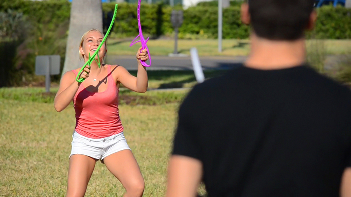 Play RingStix with multiple players, play it in a park, backyard, at the beach, etc. Play RingStix even solo by shooting the ring up in the air and catching it!